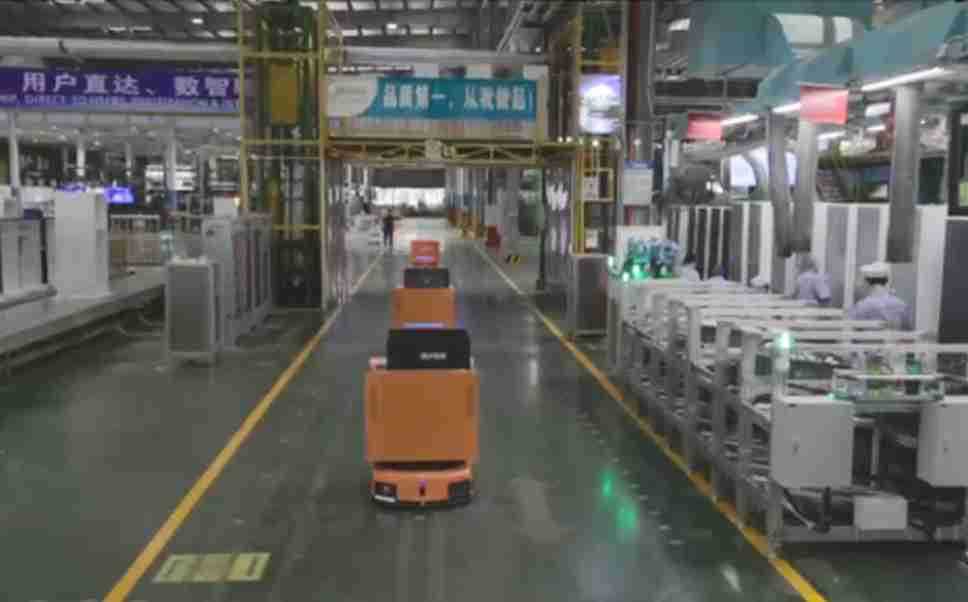 为车载冰箱物流配送打造的智能解决方案,,包含产中物流通过潜伏举升AMR搬运至线边,,,产后成品物流智能仓储,,,,流程包含产中物流智能齐套入库,,,,线边安灯叫料AMR智能配送至线边,,成品入库、、出库,,,通过无人堆高车机器人,,,,智能仓储管理替代人工作业管理,,,实现更高存储、、、更高效率、、更具柔性化的解决方案。。。